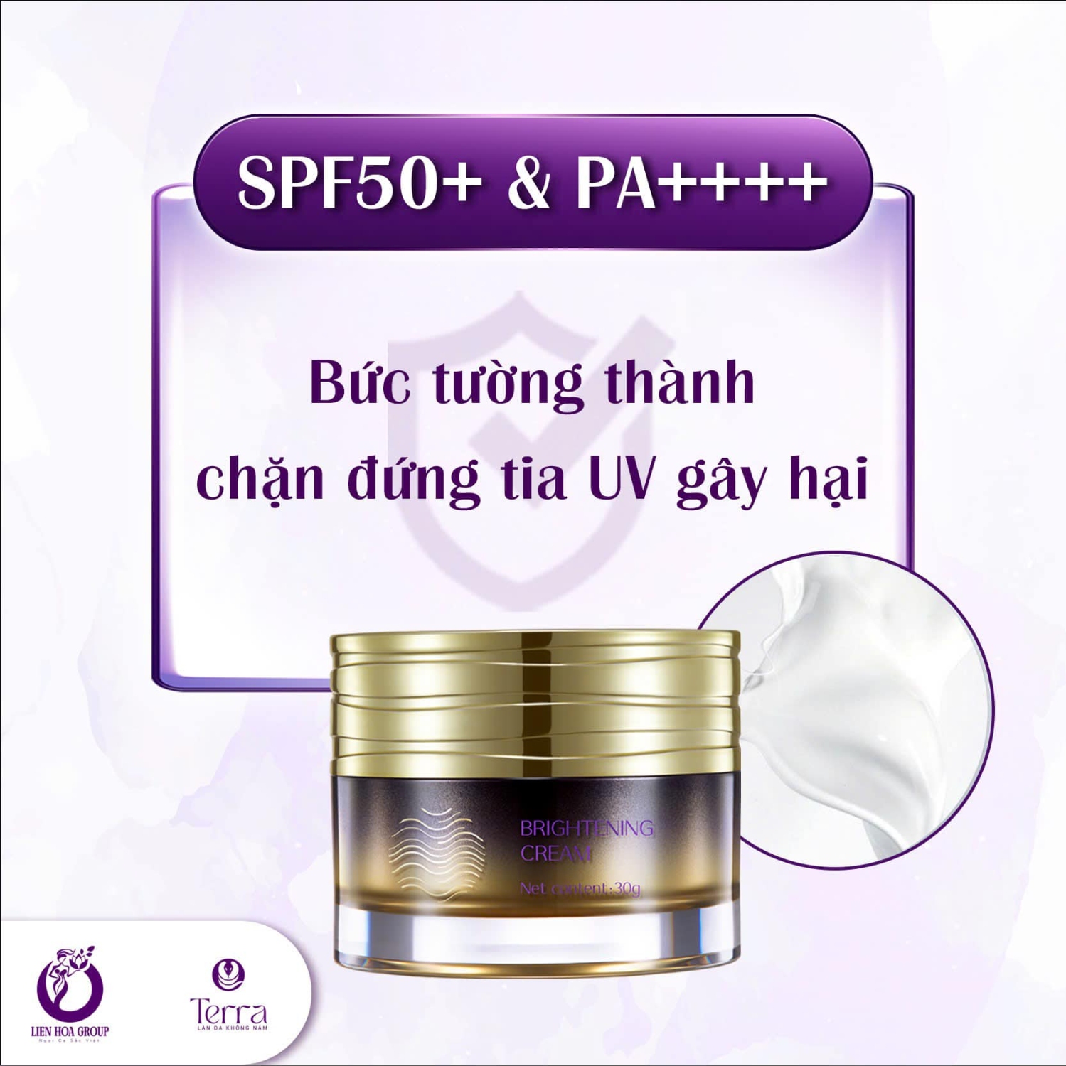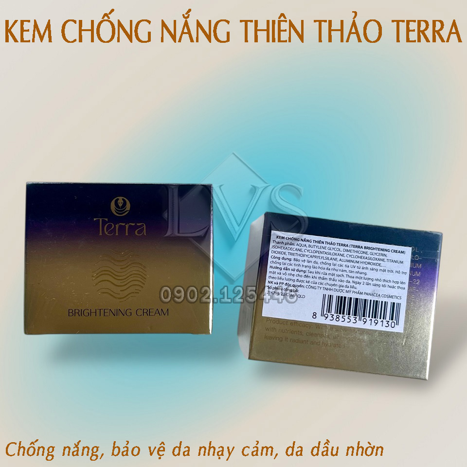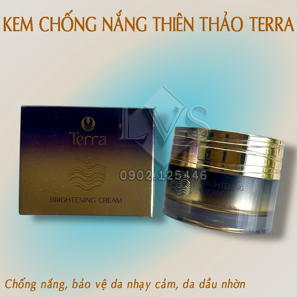 KEM CHỐNG NẮNG THIÊN THẢO TERRA Brightening Cream – BẢO VỆ TOÀN DIỆN, DƯỠNG DA RẠNG RỠ! – - Trọng lượng: 30gr - Sản phẩm của Terra Paris Công Nghệ Pháp - Mã sản phẩm: - Kem chống nắng được chiết xuất từ những thành phần an toàn dịu nhẹ cho da nhạy cảm: