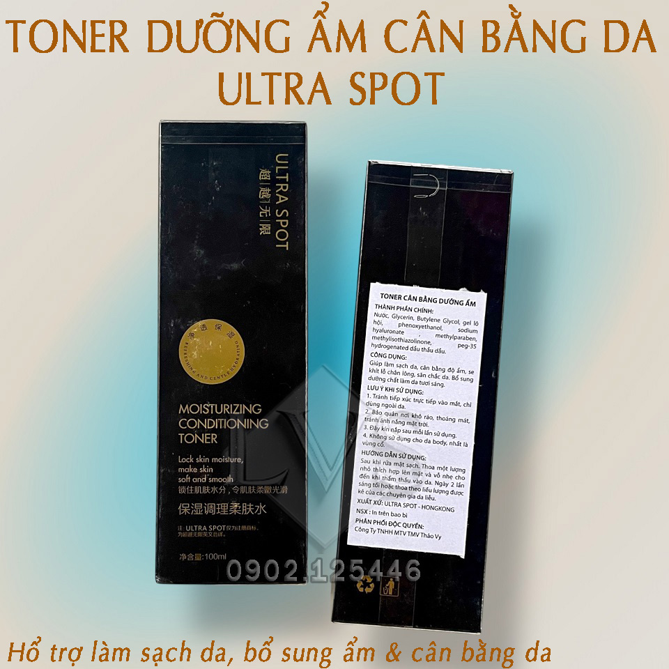 TONER DƯỠNG ẨM CÂN BẰNG DA ULTRA SPOT Moisturizing Conditioning Toner - Chai 100ml - Sản phẩm của Ultra Spot Hồng Kông - Mã sản phẩm: 4897111391723 - Những thành phần chính: