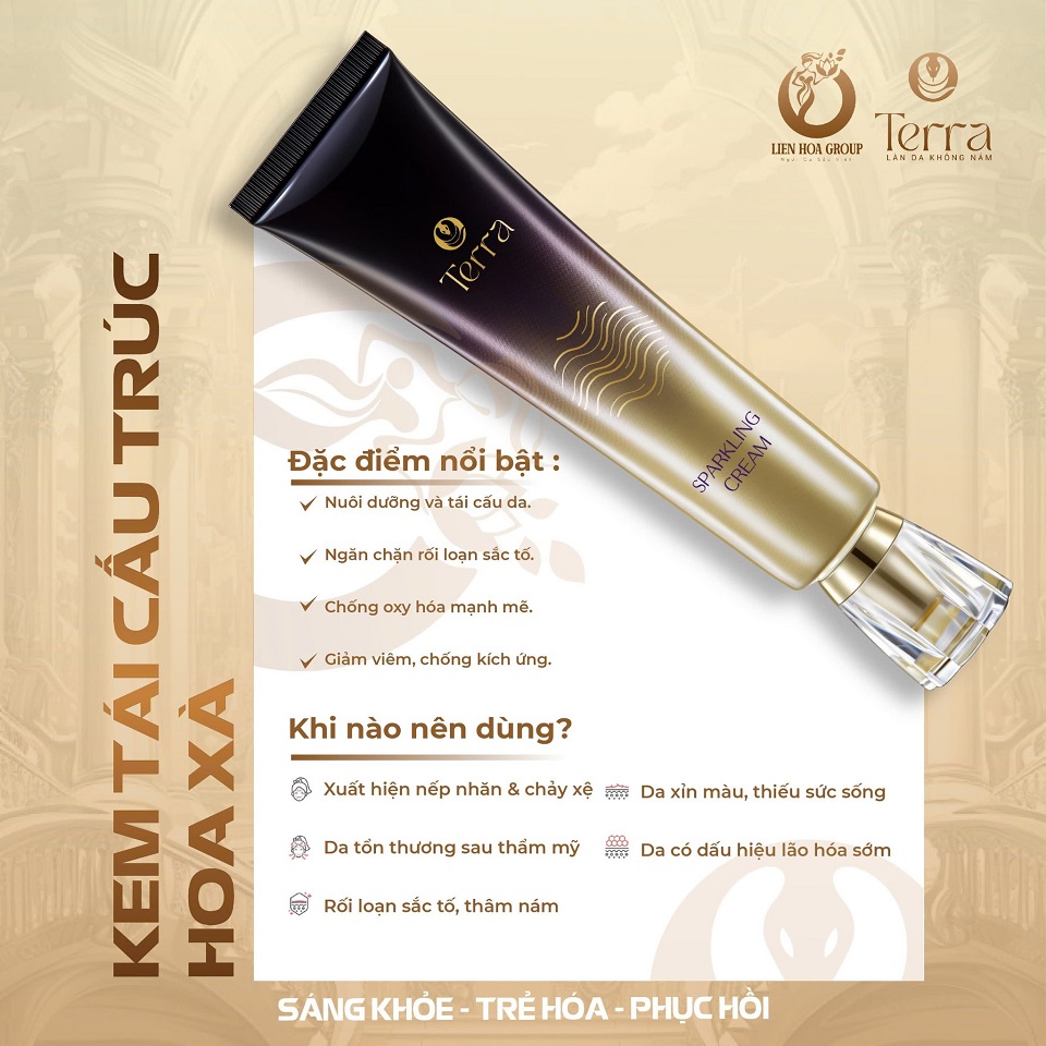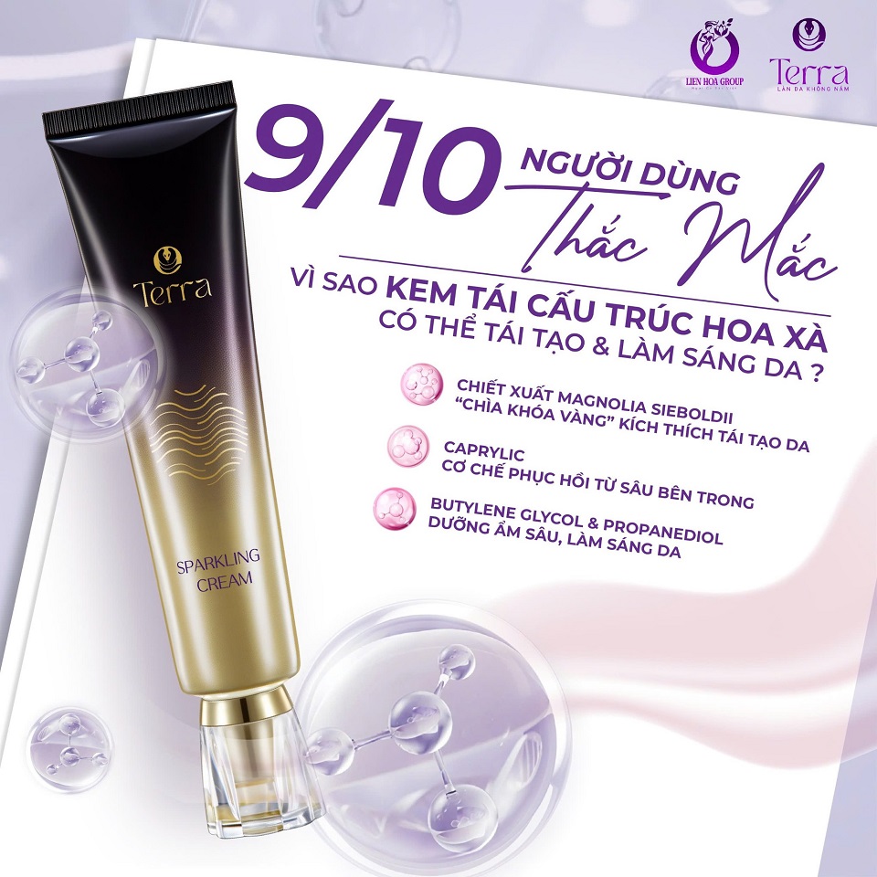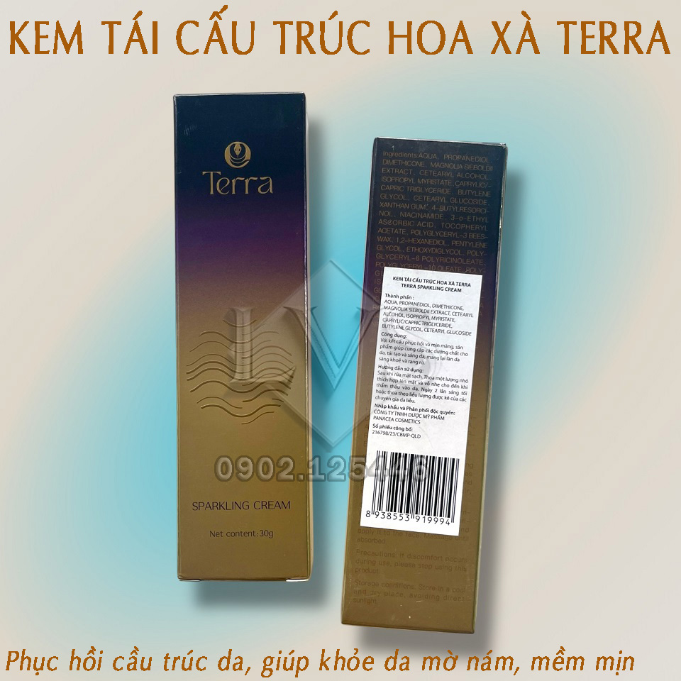 KEM TÁI CẤU TRÚC HOA XÀ TERRA Sparkling Cream - Tuýp 30gr - Sản phẩm của Terra Paris Công Nghệ Pháp - Mã sản phẩm: 6941545113784 8938553919994 - Kem Tái cấu trúc hoa xà Terra được chiết xuất từ các thành phần chính:
